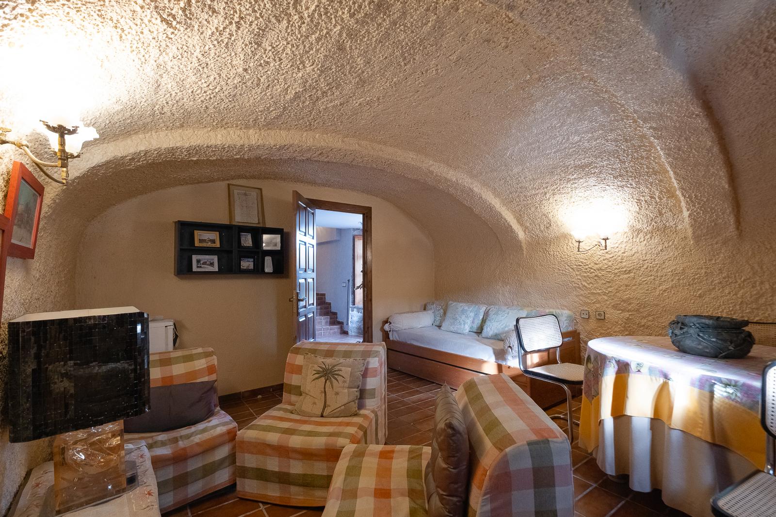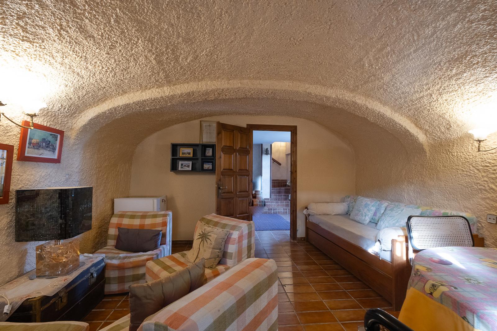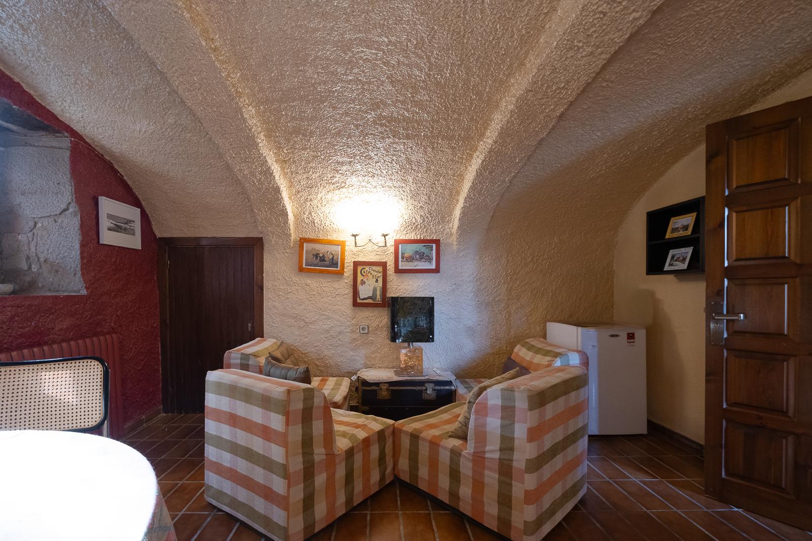 Una entrada dóna pas a un distribuïdor on hi ha un bany amb dutxa, uns armaris amb rentadora i pica, una sala chill. out amb llar de foc, televisió, taula, cadires i una petita cuina-office amb nevera i vitroceràmica.