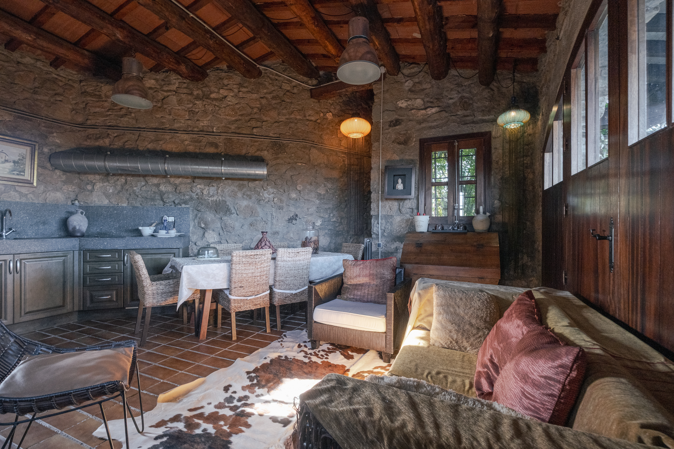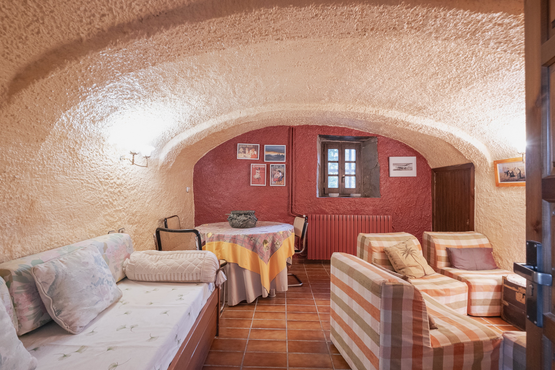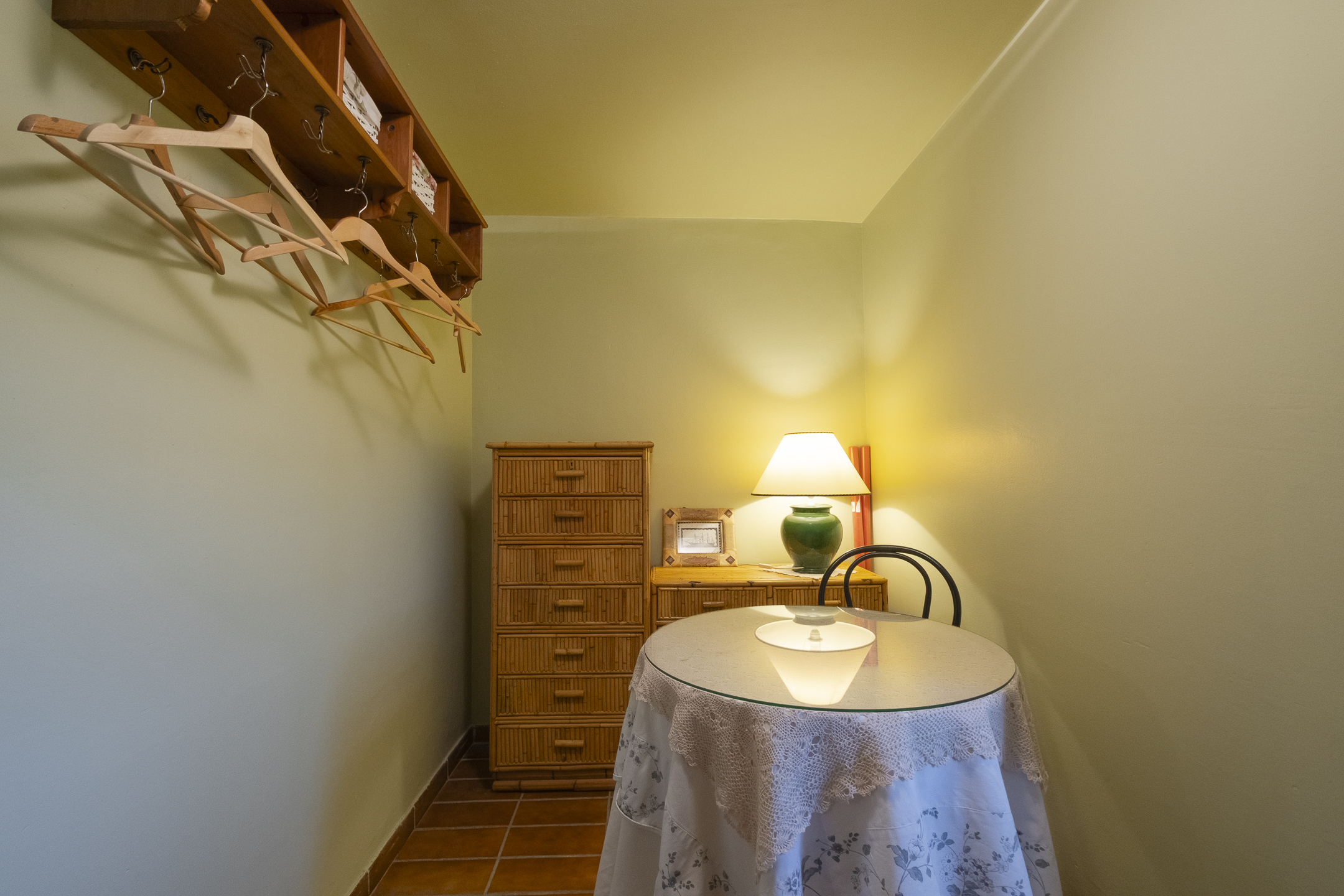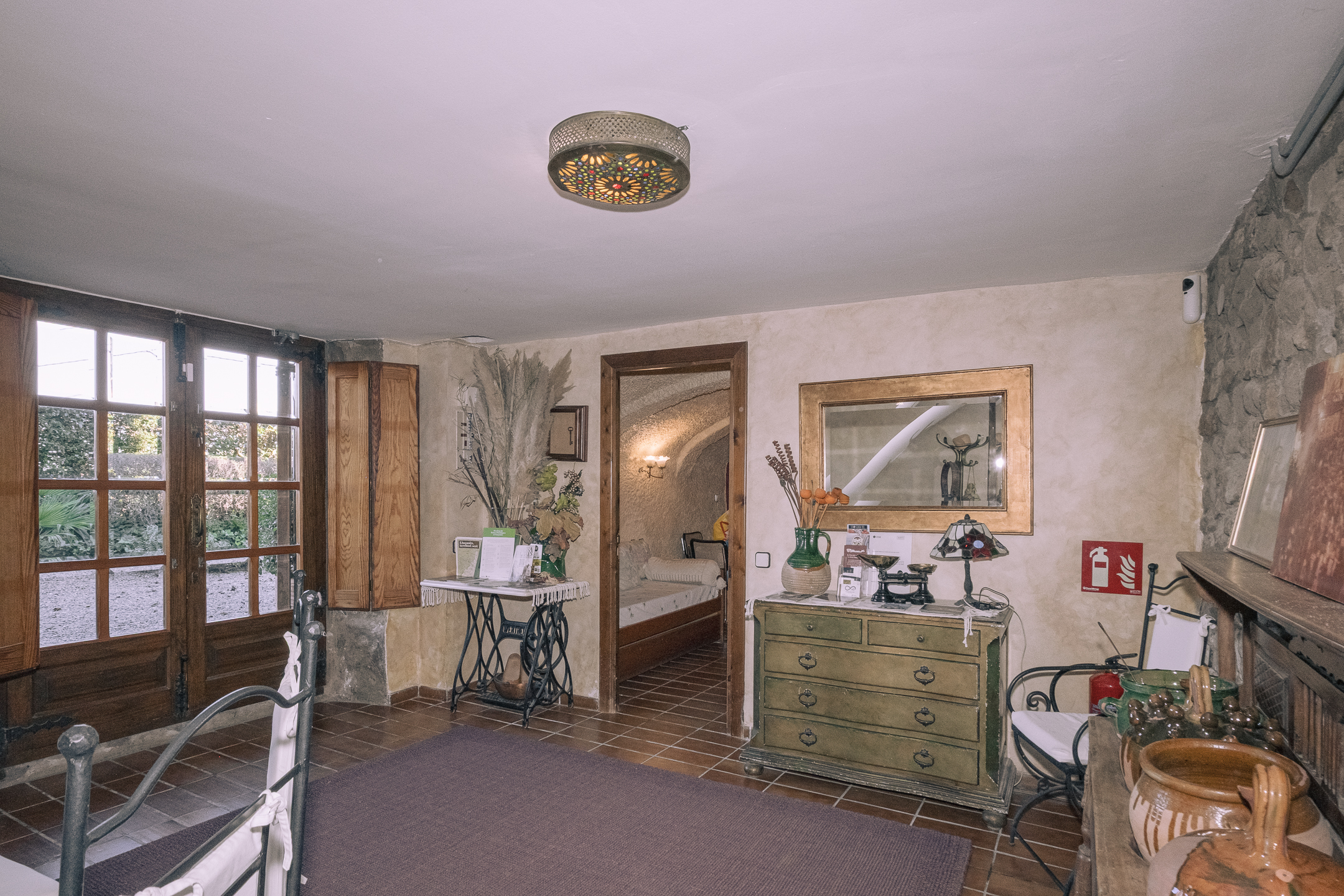 Una entrada dóna pas a un distribuïdor on hi ha un bany amb dutxa, uns armaris amb rentadora i pica, una sala chill. out amb llar de foc, televisió, taula, cadires i una petita cuina-office amb nevera i vitroceràmica.
