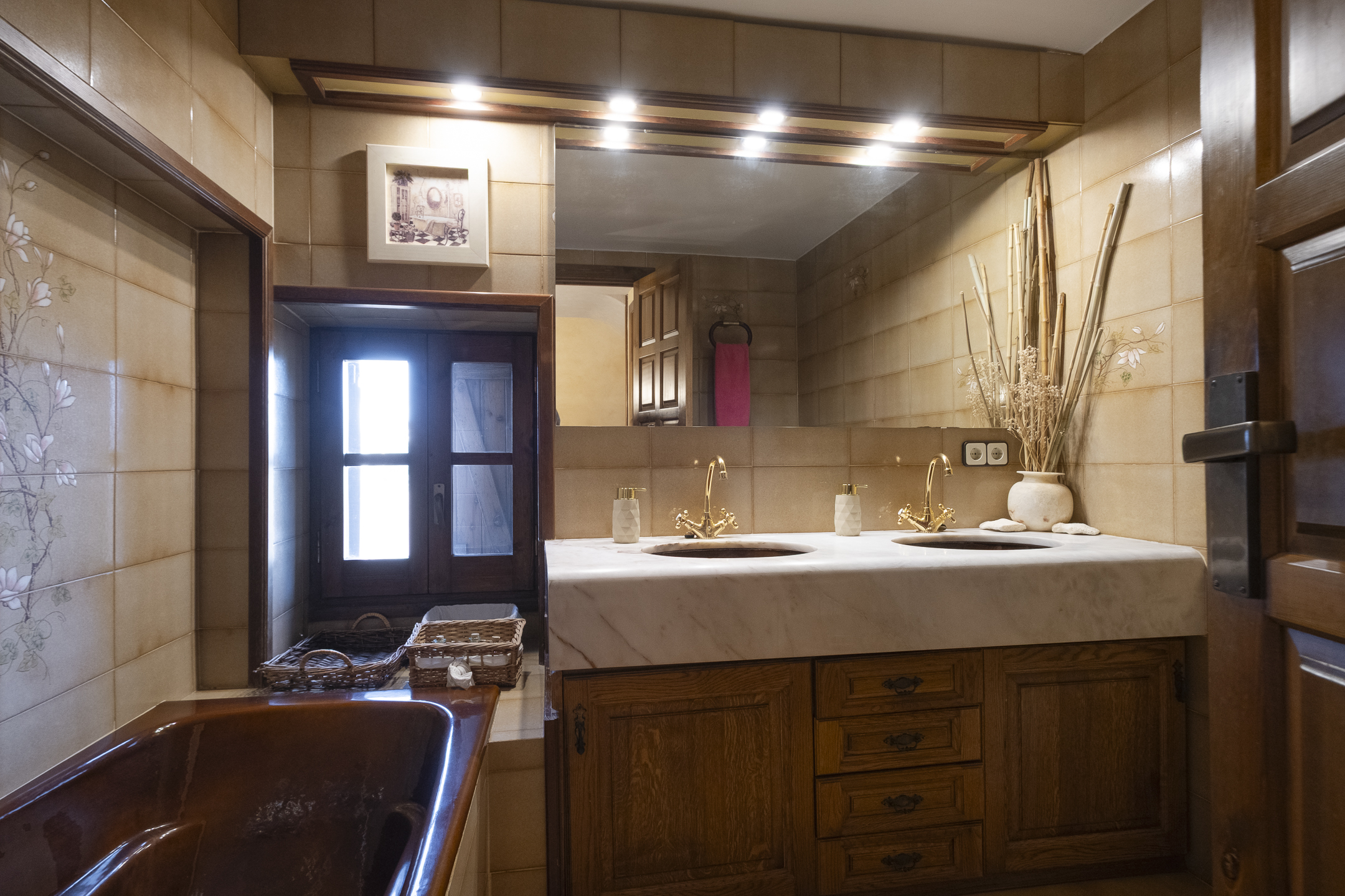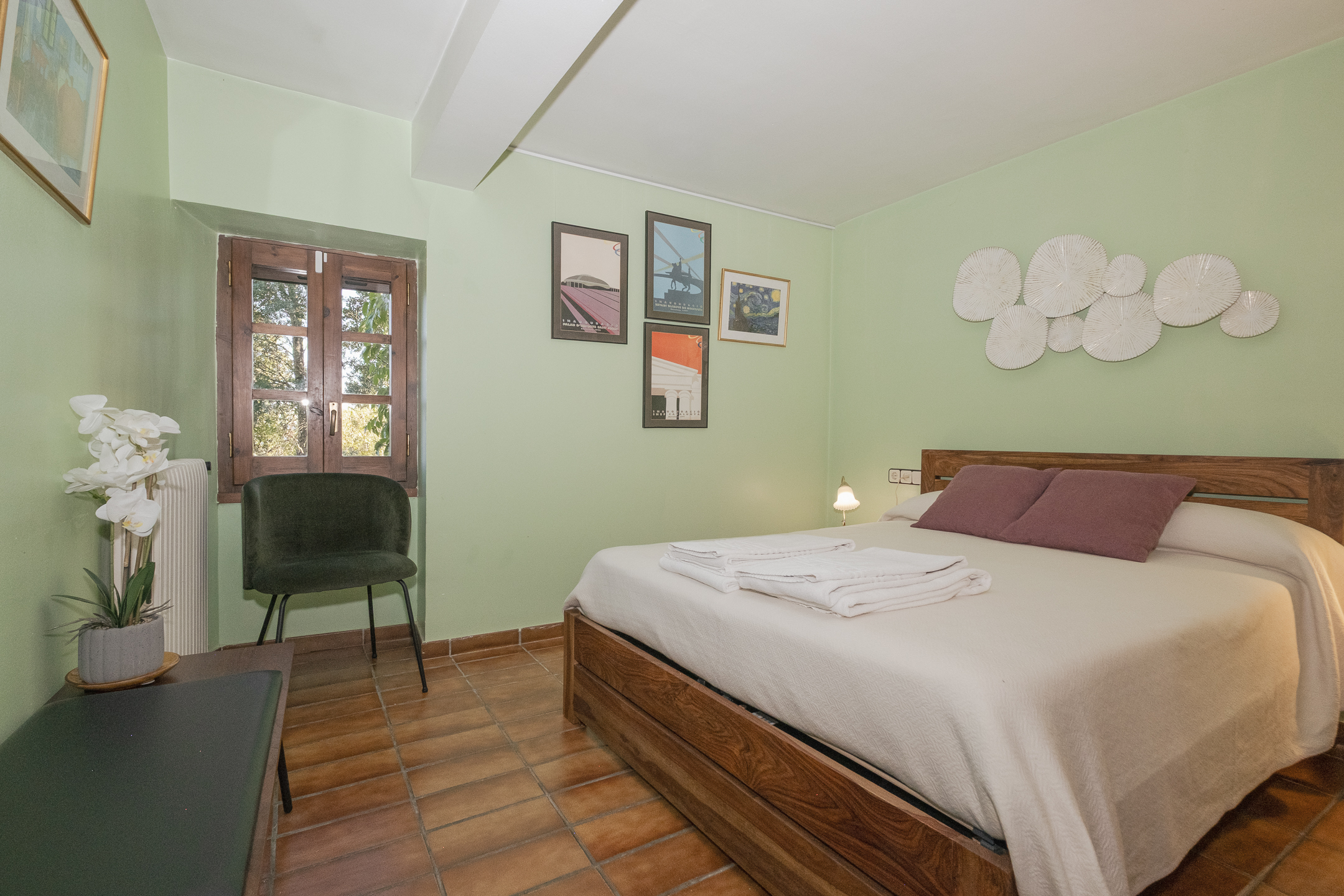 4 habitacions de matrimoni : la rústica, la Isabelina, la vintage i la moderna. Una habitació de lliteres amb jocs per als més petits i un bany amb mitja banyera.